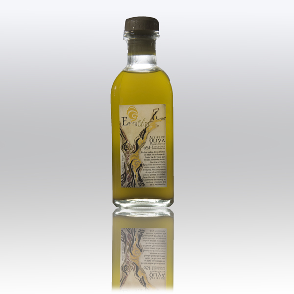 Aceite de oliva virgen extra en botella de vidrio